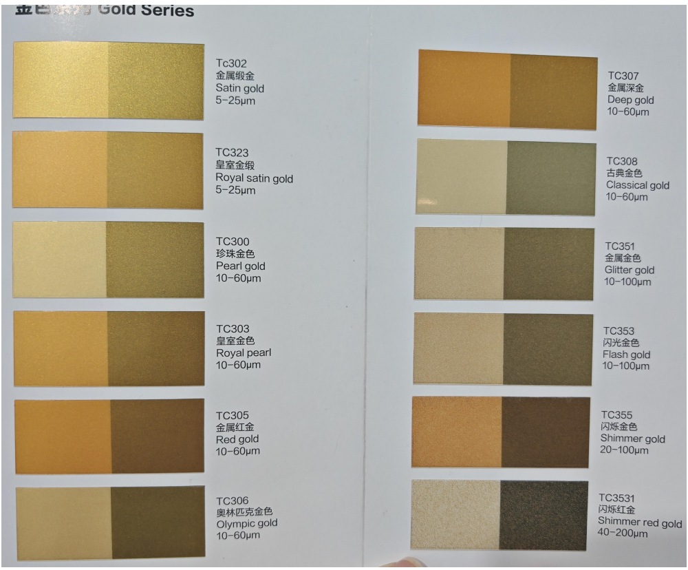 | TC355 | Мерцающее золото | 20-100мкм | √ | √ | √ | √ |